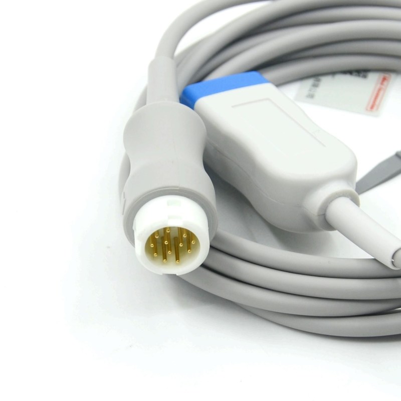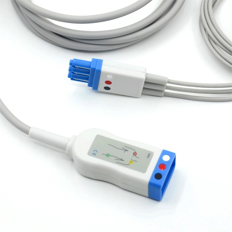 ईसीजी केबल में आमतौर पर एक छोर पर विशिष्ट कनेक्टरों के साथ कई लीड तार होते हैं जो रोगी के शरीर पर रखे गए इलेक्ट्रोड से जुड़े होते हैं।केबल का दूसरा छोर ईसीजी मशीन या मॉनिटर से जुड़ता हैइस केबल से हृदय की गतिविधि से उत्पन्न विद्युत संकेत इलेक्ट्रोड से मशीन तक पहुंचते हैं, जिससे मशीन रोगी के ईसीजी तरंगों को प्रदर्शित और रिकॉर्ड कर सकती है।